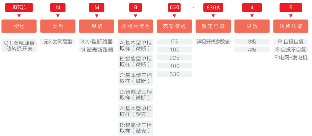 本公司设计制造的JBTQ1系列自动转换开关,是为知足客户的需求而开发的一种专用产品。该产品具有自投自复、自投不自复、电网-发电机三种切换功效,对三相四线电网供电的两路电源的三相电压同时监测,当任一相爆发过压、欠压、缺相,能自动从异常电酝迫椿到正常电源;用于电网-发电系统的产品还能发出发电指令,是一种性能完善、清静可靠、自动化水平高、使用规模广的双电源自动转换开关系列产品。JBTQ1系列产品包括:JBTQ1-63,JBTQ1NX,JBTQ1NM三种系列化产品。