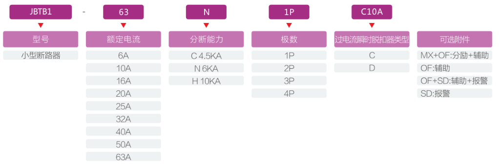按额定电流分为:6A、10A、16A、20A、25A、32A、40A、50A、63A;